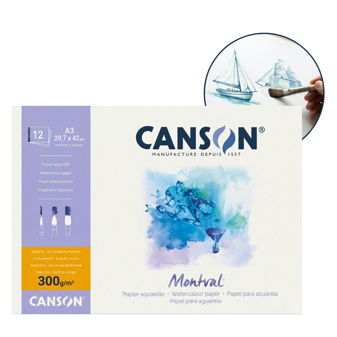 • 1 Bloco Canson Montval A3 29 x 42 cm 12 folhas 300g