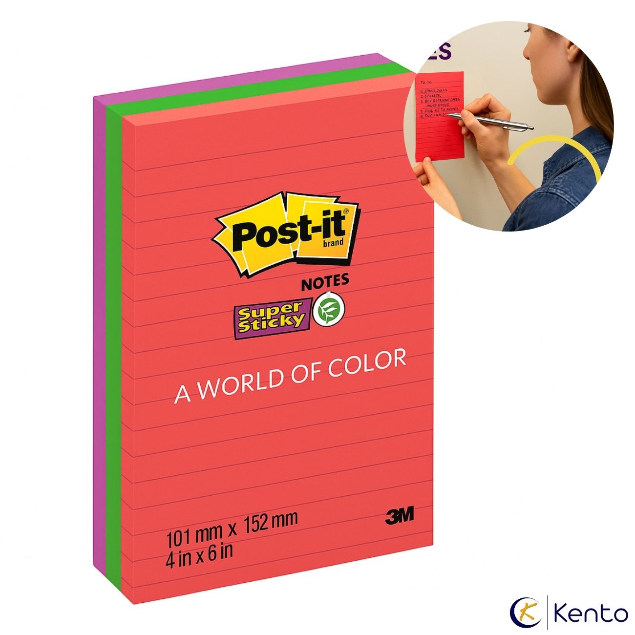 1 pacote contendo 3 blocos pautados Post-it® Super Adesivas