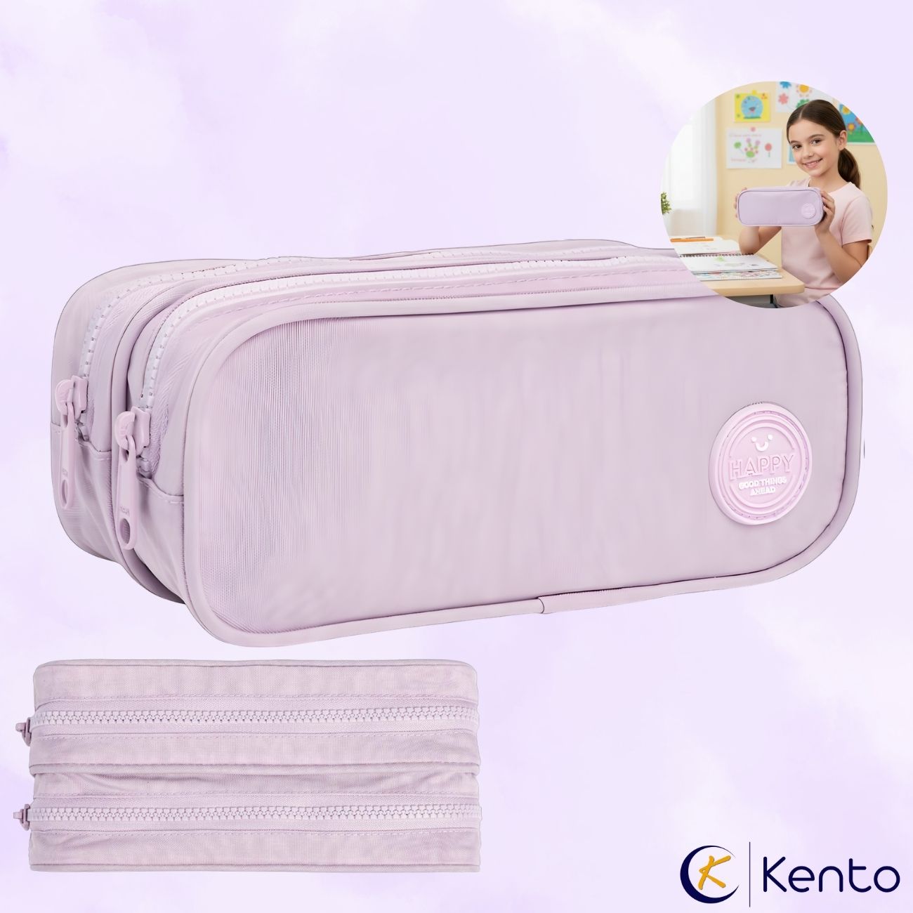 O Estojo Duplo Happy Lilás é a escolha ideal para quem busca espaço de sobra com um visual delicado e moderno. Com dois compartimentos amplos, ele é perfeito para armazenar lápis, canetas, borrachas, marcadores e diversos acessórios escolares ou de escritório. Seu design em tom lilás pastel encanta pelo estilo suave, enquanto o aplique emborrachado garante um toque de personalidade ao estojo.