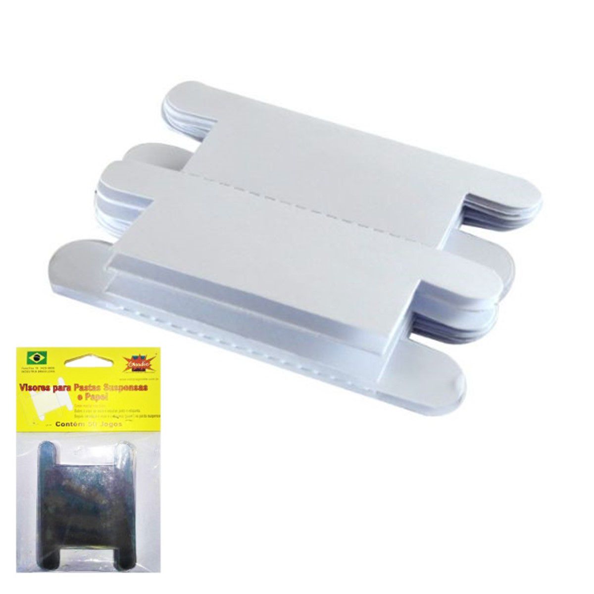 - Como Montar seu Visor: Dobre o visor ao meio e encaixe junto a etiqueta. Depois introduza o visor e a etiqueta (papel) na pasta suspensa.